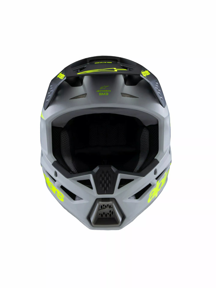 Anatomically engineered and profiled specifically for youth and younger riders, the all-new SM3 Youth Helmet is optimized for mx, enduro and off-road use., This lightweight helmet features a thermo-incted shell incorporating a special polymer blemer blender To Deliver the Optimal Combination of Impact Protection and Light Weight., Lightweight Outer Shell is Construct from a Technologically Advanced Impact Resistant Thermoplastic In Three Sizes (Youth Small, Youth Medium and Youth Large. Rider's Head Thanks To The Helmet's Crown and Cheek Pads, Which Are Available as Genuine Spare Parts In Different Thicknesses., Youth Medium and Youth Large Sizes Share The Same Eps Size, Which Heym Size To In Initally Youth Large Size As They Grow via The Crown and Cheek Pad Spare Parts., The Youth Small Has A Smaller Eps Size and Can Be Customized Only Via The Cheek Pads. Old, and Thefore they Require a dedicated Helmet Fit., Multiple Density Inner Liner Ensures The Helmet Is Equipped With The Corract Density In The Corract Area For Enhanced Impact Absorption, While Also Helping Reduce Overal Weight Effects of Oblique Impacts., Alpinestars Patented Low Friction Is Applied to the Inner Part of the Main Eps Liner to Reduce the Rotational Acceleration Forces That Can Result From Certain Oblique Impacts. friction cerebrospinal fluid, which is the body's natural defense against oblique impacts., patent visor release systems the visor is released with the correct pre-determined amount of force, effective analy reducing the ride the rider is constructed using recycled materials for a lower carbon footprint., Hydration tube channels are integrated into the helmet's cheek pads for convenience and performance., Safety, alpinestars has introduced a new in-house standard for the sm 3 youthouse The homologation standard, and in order to pass the alpinestars' New Standards, The Shell Thickness and the Structure of the Helmet Design Itself Have Both Been Optimized on the Chin Area for Superior Impact Performance., Equipped with an emergency release system and removable. Pads while the helmet is still on, while the 3d contoured foam enures rider comfort., Soft textile chin strap is 25mm for optimal safety and rider comfort., stainless steel d-ring sillure a tight and secure fit. 10 Inlets and Seven Exhaust Ports., The Visor Has Been Designed to Direct Air Into the Ports for Enhanced Airflow.