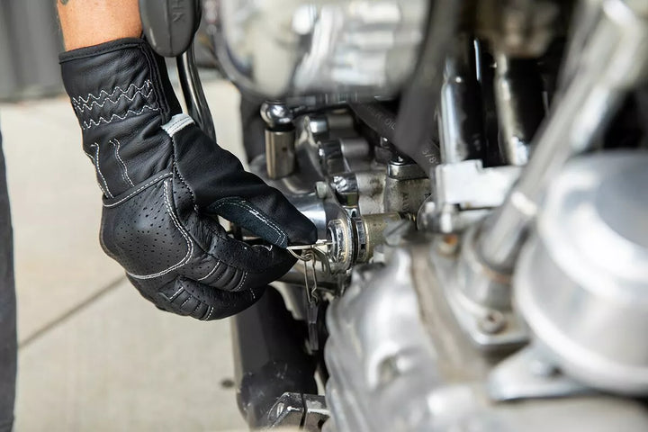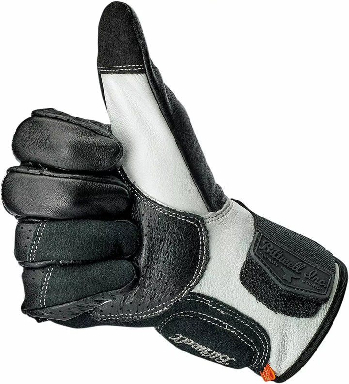 100% COWHIDE Construction on Exterior for Durability and Abrasion Resistance, Suede Fiction Zones with Strategic Padding for Impact Protection, Moisture-Wicking Fleece Lycra® Half Liner Inside for Breathability and Comfort, Performed Palm Panels Increase Invest High-Impact Plastic Knuckle Guards, Wide Elastic Velcro Wrist Closure with Thermoplastic Rubber Biltwell Pull Tab, Smart Screen-Compatible Thumb and Fingerty