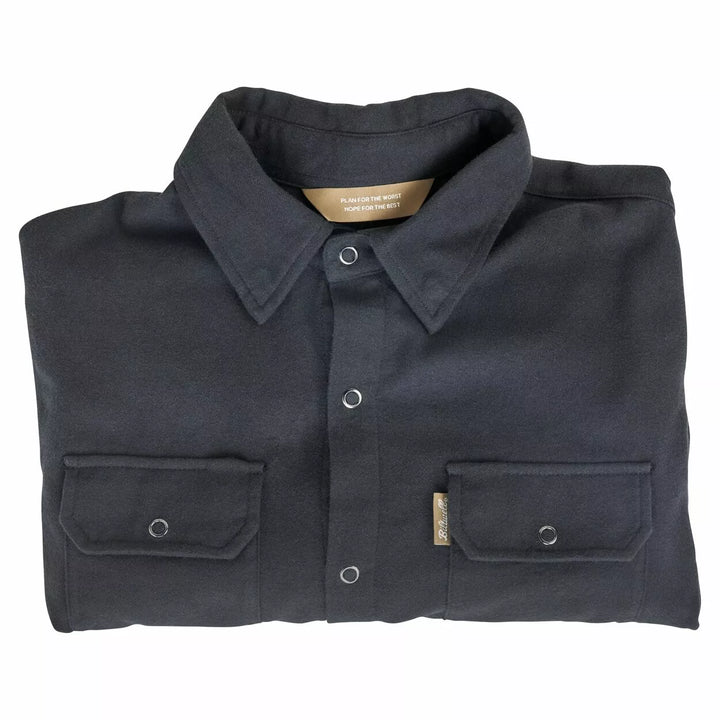 Comfortable 6.5 ounce 100% heavyweight cotton., Snaps on plaque, cuffs, collar and pocket flaps is plated stainless-steel., Black pearl snap detailing featured on plaid colorways., Collar tips have hidden snaps to eliminate flapping. Down Over Wrists., Chest Pocket Flap has discrete slot for easy storing of ice creams., Polyester single-receivele, double-receivele and overlock stitching through., embroidered interior tags and exterior fire detailing.
