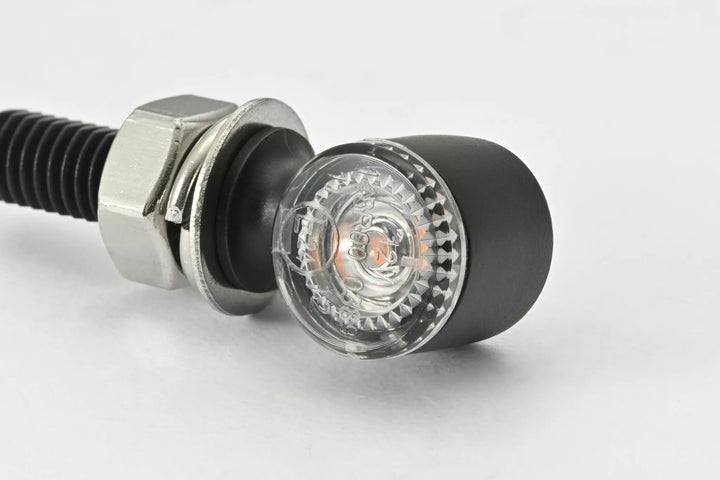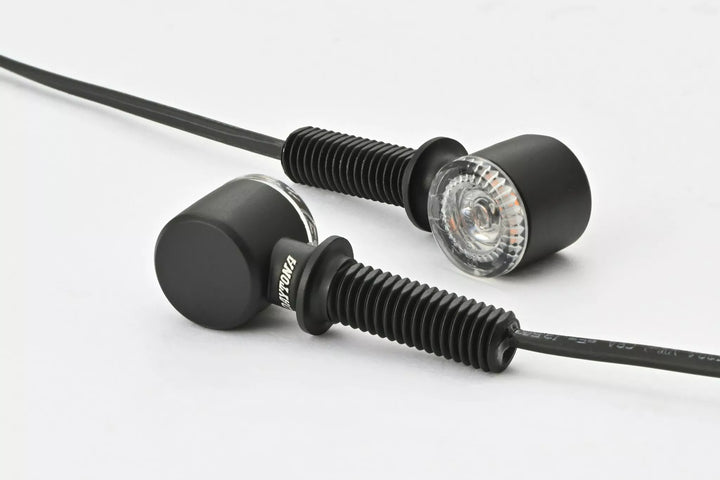 Alloy Housing., Easy Mount with M8 Thread., E-marked for Front and Rear., Vibration Damping Integrated., For DC12V Power / Will Not Work for 6V / AC12V., Pair / 2 Indicators.