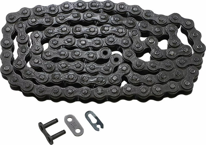 Low-Cost, High-Quality Solid Roller Chain, Quad-Staked Pin Riveting, Special Alloy Steel Construction, Extended Rived Bushing Anti-Kink Design, Pre-stretched at Factory, For Motorcycles original Equipped with Non-Ring Chain