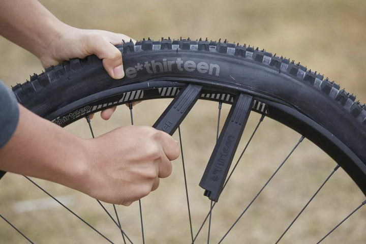 Take the frustration out of flat tires with e*thirteen's tire liver and plug repair kit., This handy and compact tool is a combination of 2 sturdy composite tire livers which encase a tire plug needle and 5x3.5mm self-adhesive. Theyre some of the toughest livers on the market, designed for dh casing tire use, act as a Comfortable handle for the tire plug needle, making insertion into the heaviest Case Tires a Breeze, and Include 4 sizes of spoke wrenches, for spokes Includes: 2 Composite Tire Liver's Designed for DH Case Tire Toughness + Puncture Plug Needle and 5 Extra Thick 3.5mm Self-Adhesive plugs +3.23, 3.30, 3.45, 3.96mm Spoke Wrenches