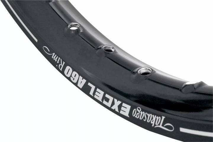 A60 Rims are Structuly 15% Stronger than Excel Takasago Signature Series Rims, Yet A60 Rims Remain the same Weight, available Black and Characterized by a Metallic Silver Pinstripe Along The Edge of the Rim Giving A60 A DISCUE Keeping Your Bike Lighter Than Your Competition's, Developed for the Racer Looking for Increased Wheel Strength and Durability, Rim Only, for Spoke Applications See Excel Rim and Spoke Chart., Can Be Laced to Stock, Excel Pro Series.