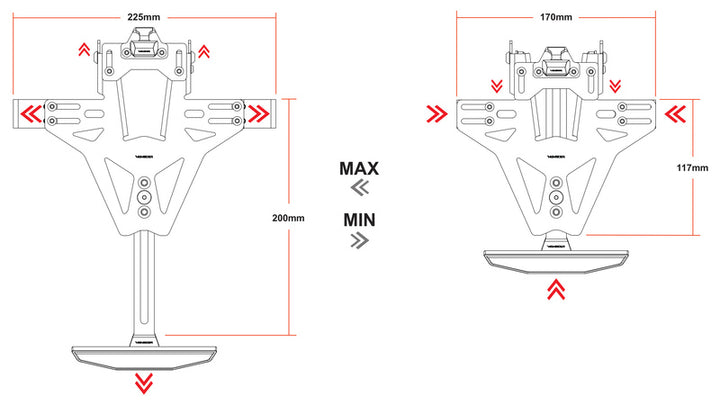 The Indicator Brackets of the Highsider Akron-RS Pro are Adjustable in Width and Thefore Suitable for All Types of Accessory Indicators. This Adjustment Option Allows You to Adapt the Position of Your Indicators to a Wide Variety of Licence Plates. To enable the indicators to be fitted without disconnecting them from the wiring harness, the 8 mm holes are slotted to the side.