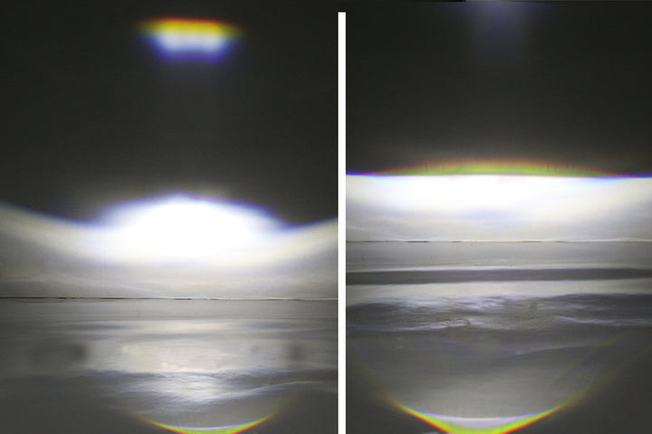Compact and powerful all-in-one LED spotlight with a round lens in a black aluminum housing and robust mounting. Highsider Dual-Stream impresses with its modern technology – a lit ring around the lens serves as a position light and a built-in mechanical shutter switches between high and low beam.