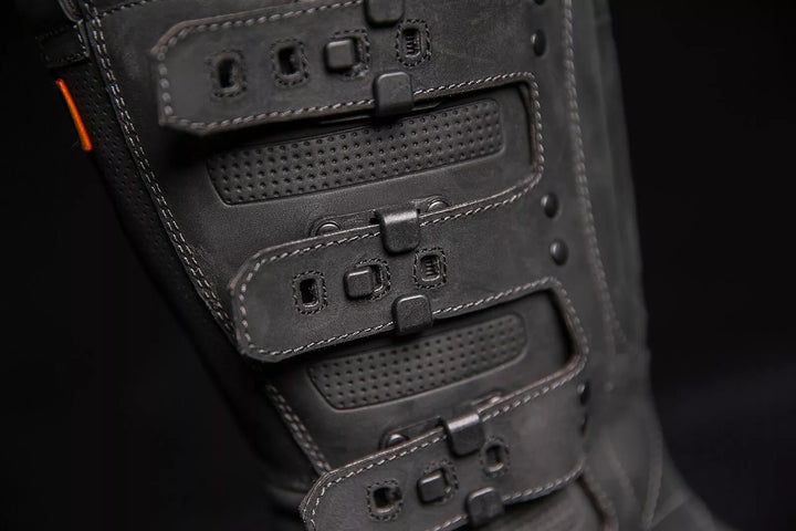 Premium Leather Upper Combined With Oil/Slip-resistant Outsoles For Rugged Style, Five-Strap Chassis Allow for a Comfortable Fit, Side Zippers for Easy On And Off, Tough Reinforced Shin Plates and Impact resistant Nylon Buckles, Internal D3 your ride take a turn for the worse, hi-rebound eva foam insole's provide all-day motorcycle riding comfort and support, reinforced shifter overlay