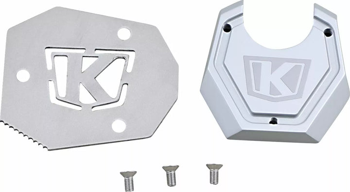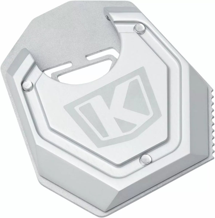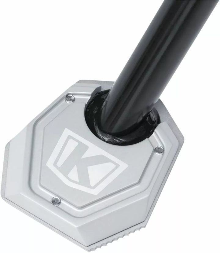 Provides Additional Surface Area to Keep Kickstand From Sinking Into Soft Surfaces, CNC Machined 6061-T6 Aluminum Top with Laser-Cut Stainless Steel Bottom Plate, Outer Edge Edge Can Be Utilizer to Breide on Flids on Fltr. The Bottom Plate Ads Traction to Help Deploy Kickstand in Wet or Muddy Conditions, Includes Three M5 Screws