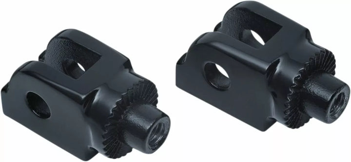 2-part system ALLOWING YOU TO CHANGE YOUR PEGS WITHOUT PURCHASING NEW ADAPters, Requires Footpegs Without Adapters, Allows the Angle of the FootPeg and Floorboard to Be Set and Locked Into Place, Features splines that match Floorboards