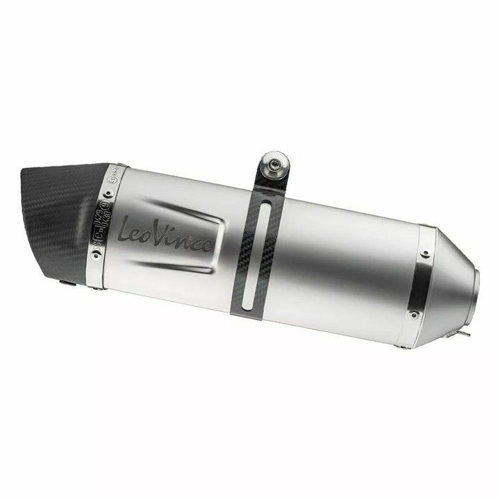 LV One Evo Stainless Steel is the synthesis between tradition and modernity., It combines the leovince classic style looks and innovation in the research of the most performing and lightweight materials., Features, aisi 304 stainless steel sleep, full carbon orb (1,650 ᄚ F), Adjustable Full Carbon Fastening Strap, Laser Etched Leovince Logo