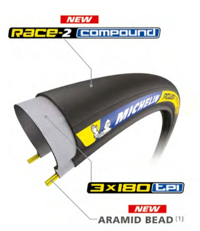Michelin Power Time TrialBeat Your Record! More Rolling Efficiencywin Seconds with the Race2 Compound and the 3x180 TPI CASING.LIGHTER: Thanks to the Aramid Bead that Combine Stiffness and Lightness.exClusivhtim Marathontechnologies-Race-2 Compound: New Generation of Rubber Compounds Designed to Reduce Rolling Resistance.- Aramid Bead: Aramid Beads That Combine Stiffness and Lightness for Greater Security and Easier Assembly.weight. Bead: Folding Casing: Clincher Color: Black Mounting: TuBette Rim_diameter: 700 Tire_Family: Cycle Tires Tire_width: 25 USE: Road
