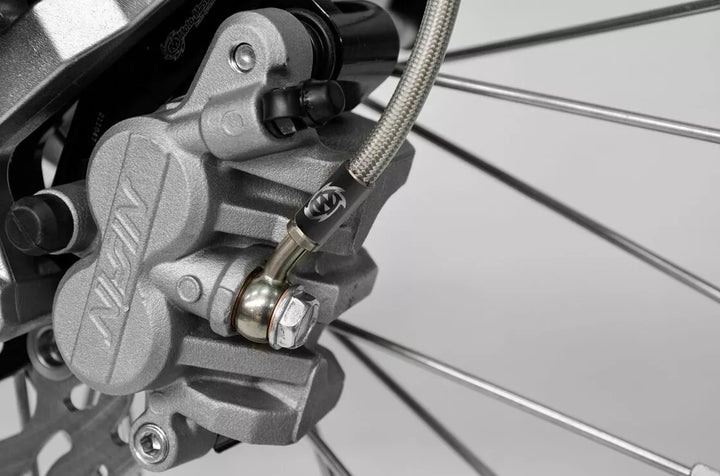 PTFE Hose Liner with a Stainless Steel Wired Braid which is Protected by a Durable and Lightweight PVC Covering., Stainless Steel Banjos Are Used To Eliminate Any Possible Corrosion. instructions., stainless braided brake lines eliminate that モ spongy ヤ feeling of standard plastic brake lines.