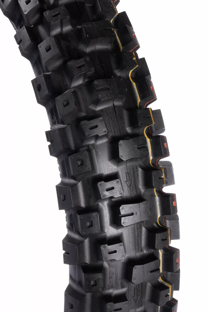 The Latest Addition to the Motoz MX Tyre Range is the Terrapactor MXI (MX Intermediate) Competition Tyre. Engineered with a Lightweight Carcass and Designed to Excel in Intermediate to Hard Terrain (Mix of Loose and Packed Soil, Hard Packed Soil and Deep Heavy Ruts). The Benchmark for MX Tyre Performance Across Multiple Types of Terrain!, The MXI Tyre Stands Out With Its Distinctive Pattern, specifically Crafted to Deliver Top Performance. By strategically Incorporating Flex Points Within The Carcass and Knobs, The Mxi Tyre Provides Predictability and Enhanced Corner Grip, Adapting and Flexing According to the Terrain to Give Greater Control and Confidence While Riding. Hard Packed Soil and Deep Heavy Ruts), Full Range from Mini-Cross to Big Bikes (15 Different Sizes), Two Front Tyre Sizes, 80/100-21 For the Most Aggressive On Track Performance and the All-New 90/100-21 With a Taller Profile for Increased Conditions, Unique Flex Zones Built Into Carcass and Knobs For Improved Feel and Compliance, Flex Zones Incorporated Into All Treat Rows to Improve Corning Feel and Drive, All New Inner Sidewall Construction for Improved Compliance