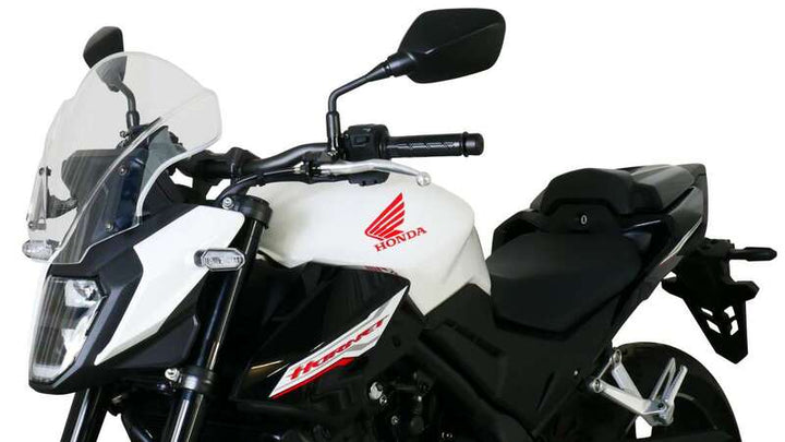 Touring Windscreen with Optimum Wind Protection That Integrates Beautifully Into the Motorbike. Length (mm): 461 Width (mm): 356 Height (mm): 178 Color: Clear Crank Lenght (mm): Null Crank Material: Null Windshield Type: Touring