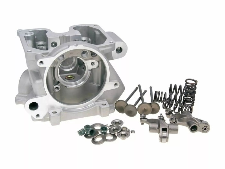 Naraku Racing 4-Valve cylinder Head with 62mm Combusttion Chamber to Satiate your Appetite for Power, Increased Flow, Reinforced Valve Springs and Larger Valves (21/33mm), SUITABLE FOR YAMAHA X-MAX, WR, WR, YZF-U 125 or fuel injection system must be re-tuned (z. B. with malossi force master), The cylinder head is suitable for following big bore cylinders: naraku nk600.74, polini 166.0101, malossi m.3114852 and other cylinder 62mm, Intake Valves: 23mm Exhaust Valves: 21mm, New Models Have The Lambda Sensor Connection Directly On The Outlet (This Must Be Closed on Older Models), Scope of Delivery Without Shafts for Roller Cam Followers