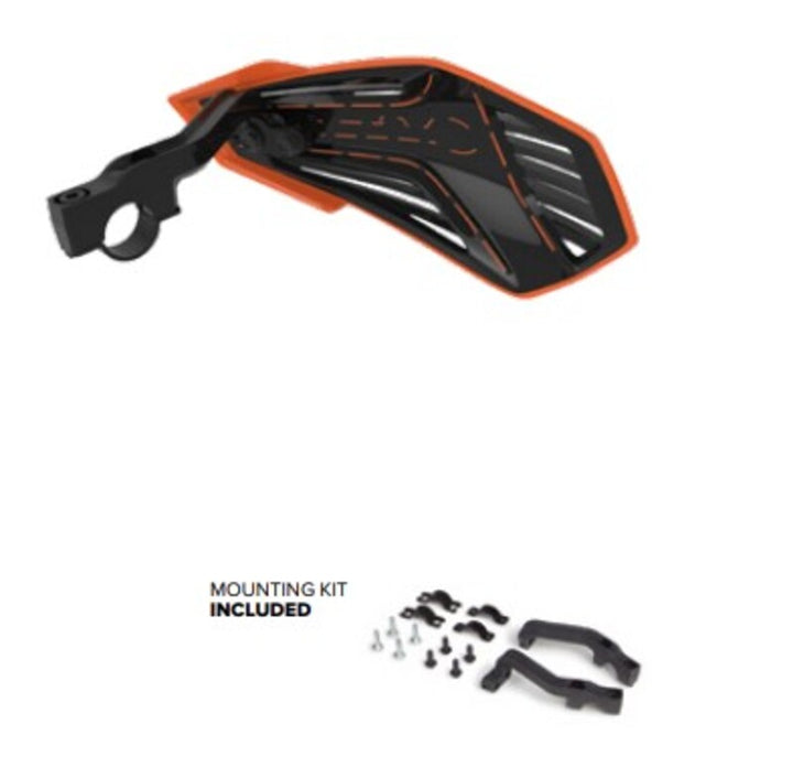 MX Air is a dual material handguard that features a new universal mounting system. This New Mount is assembled Between Grip and Master Cylinder and goes Above the Handlebar, to Make Most of the Space Available and Maximize Protection.