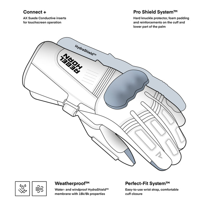 Rebelhorn Tracer WP is the perfect glove for long -distance trips and touring in all weather conditions. Waterproof, protective and comfortable, with practical features such as Visor dryer and touchscreen compatibility, make it every trip both Safe and comfortable.