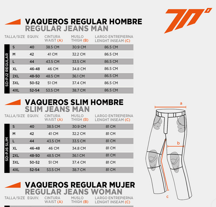 Jeans with a normal fit, tough and slightly stretchy fabric – Very comfortable – Double-stitched reinforcement – With 270 g. Kevlar-reinforced interior in areas with the most wear – Extremely resistant to cuts and abrasion – Pockets for hip and knee protection with Velcro to adjust their position – With PU protection on knees and hips (CE EN1621-1:2012) with bag.