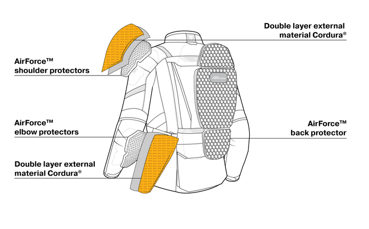 In addition, the jacket is equipped with an extensive ventilation system - it has innovative large panels on the front that provides different possibilities for air flow control, extra long ventilation holes on the forearms and a large, adjustable panel on the back.