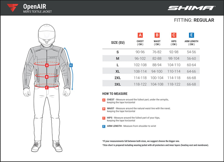 Shima Openair contains shoulder and elbow protection in a standard level that corresponds to EU requirements and a back protection CE Level 2. The protectors are designed in a special double layer's honeycomb. They provide reliable protection and breathe. In a collision, the protections cure and absorb the maximum shock power.