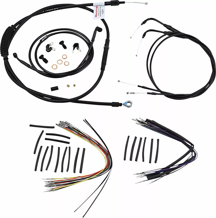 Complete Installation Kit For Burly Ape Hangers, Kit Includes Extended Brake Line (Unless Noted), Extended Clutch Cable/Clutch Line, Extended Throttle/Idle Cables as Required and All Necessse Wiring, Brake Inner Lines, Whhen Included, Felemudd, Outer Braid, Dresser Kits Reuse Stock Throttle-By-Wire Harness, Kit is Based on Using 2 "Risers with Ape Hanger-Style Handlebars.