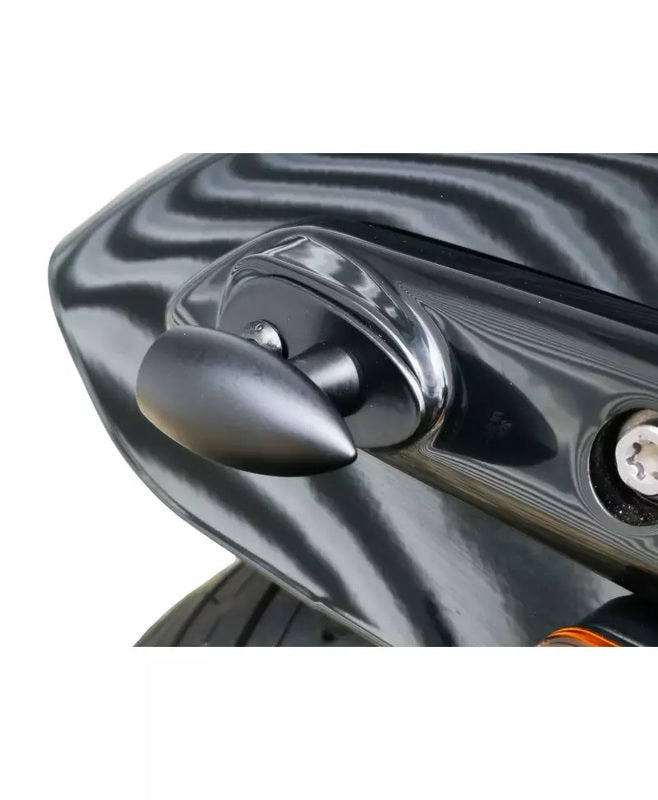With one hole size of 8.5 mm they are suitable for most flashers with stalk. The kit contains two parts, one for each side behind, perfectly shaped to fit the Nightster original lines.