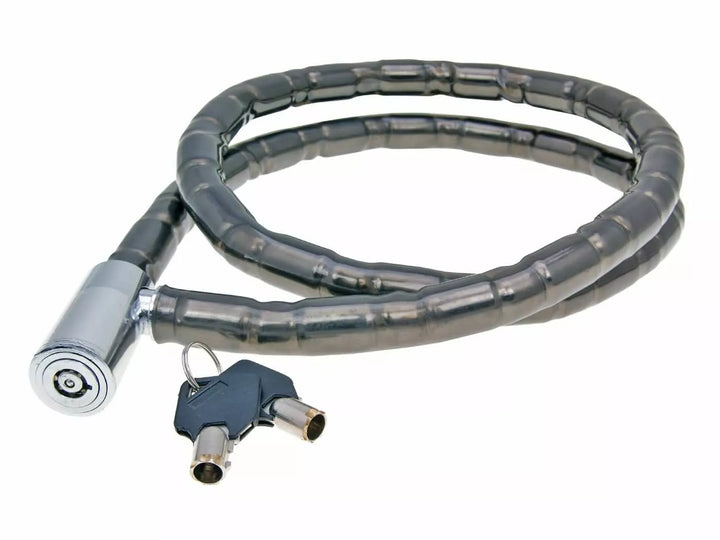 Sehr robustes gepanzertes Kettenschloss mit flexibler Gummibeschichtung. , Länge 1,20 m / Durchmesser ca. 18 mm. , Der Klassiker unter Zweiradschlössern, geliefert mit 2 Schlüssel.