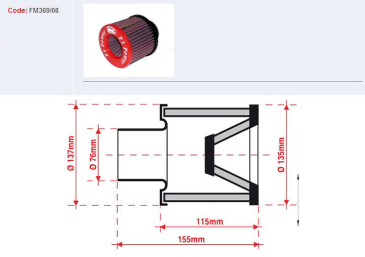 BMC -Luftfilter verjüngt Ø76mm - FM369/08 FM369/08