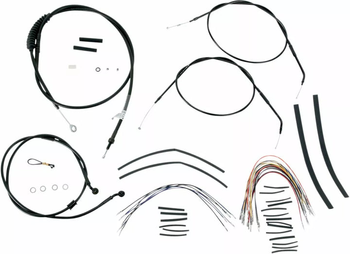 Komplette Installationskit für stämmige Affenbügel, Kit enthält eine verlängerte Bremsgrenze (sofern nicht angegeben), erweiterte Kupplungskabel/Kupplungslinie, erweiterte Gas-/Leerlaufkabel und alle notwendigen Kabelverdrahtung, Bremsbremsen-Innenlinien, enthalten, enthalten, Felemudd, Außengeflügel, Kommoden-Kits-Stammdrossel-Drossel.