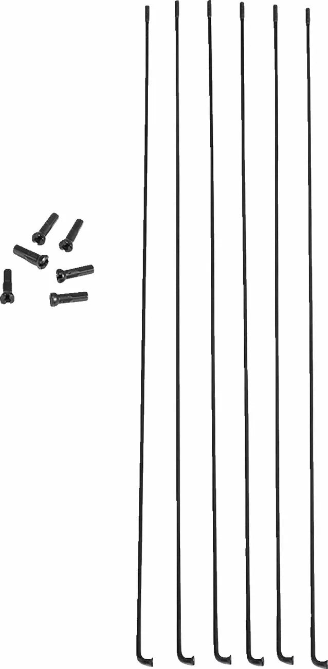 Vorderer spezifischer Spoke -Kit, 6 Speichen und 6 Brustwarzen pro Kit (3 Antriebsseite, 3 Nichtantriebsseite) für Legierung/Kohlenstoffspoke -Speichenlängen und -typen