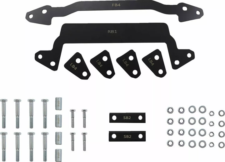 Hebt alle vier Ecken des Fahrzeugs für erhöhte Weitfreiheit und Strachität, Degenings für die Montage größerer Reifen, alle notwendigen Hardware und Anweisungen ein