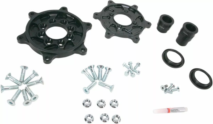 Modulare Träger ermöglichen es den Fahrern, ihre Rad-/Reifen-Rennsätze schnell und einfach zu wechseln, um einen Trägerringadapter und alle notwendigen Abstandshalter und Hardware für den Bremsrotor vom OE-Typ zu montieren. Trägerring-Sets sind die Schlüsselkompeten