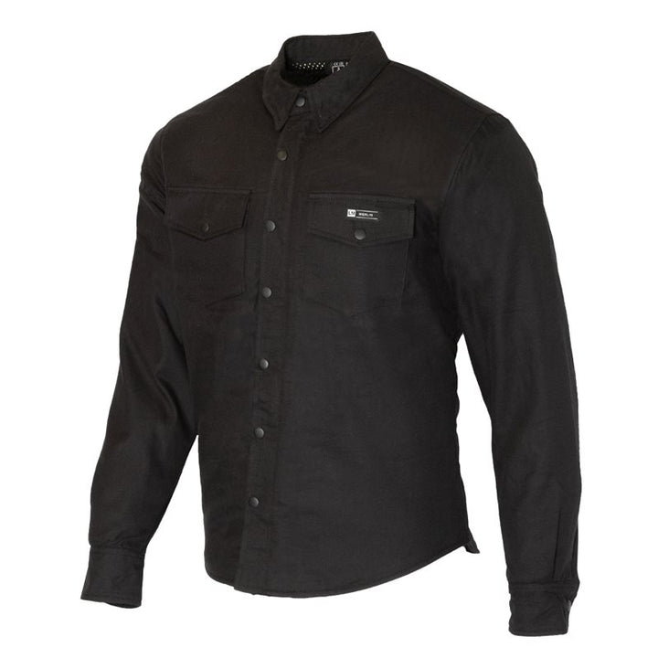 Die Hemd -Axt wurde entwickelt, um überall zu passen. Die Farbe macht es vielseitig und der komplett schwarze Premium -Baumwollstoff hat einen vollständigen Kevlar® -Schutz in 220GSM Dupont ™. Begleitend D3O® LP1 Armanox -Schutz für Schultern und Ellbogen sowie eine Tasche zum Schutz des Rückens. Genehmigt nach Standard CE EN17092 Level A. Details wie zwei Brusttaschen mit Druckknopf, Kragen mit Druckknöpfen, abgerundetem Finish im Rücken und kurzbezogene Reißverschluss für Hose und Euro-Hoop-Kupplungsgurt.