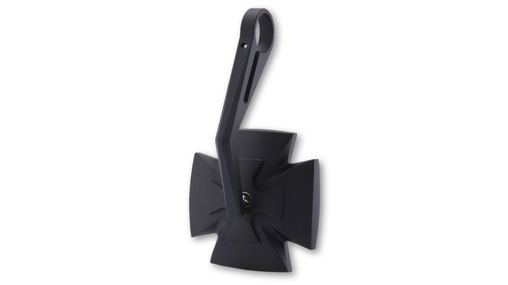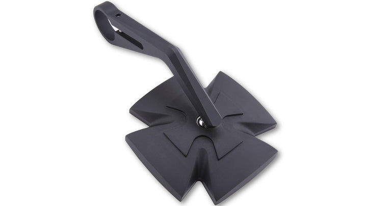 Highsider -Lenker -Endspiegel im Kreuzdesign mit einem Aluminiumkopf. Geeignet für Lenker mit einem inneren Durchmesser von 12 bis 21 mm. Kann für die linke und rechte Seite verwendet werden, E-zugelassen.