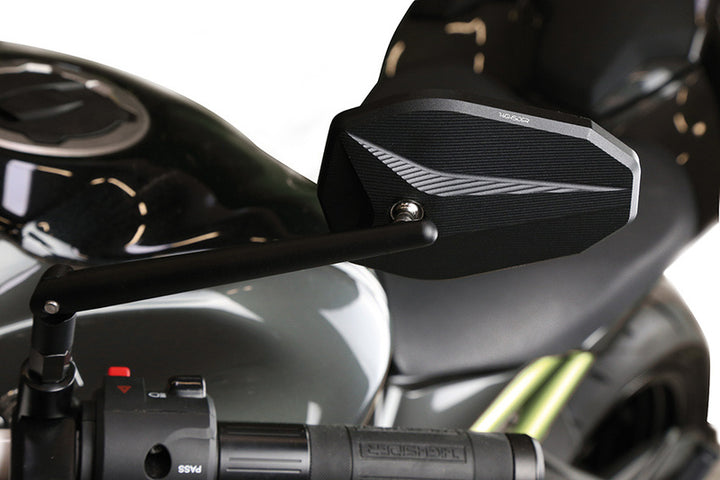 Ein angesehener universeller Spiegel mit einem Kopf im schwarzen anodierten Aluminium und einem verstellbaren Kofferraum. Dank der fortschrittlichen CNC-Milz-Oberfläche mit Spuren erscheint HighSider Victory-X noch eleganter und gibt der zeitlosen Form ein neues visuelles Highlight. Durch die Verwendung eines zweiten Verbindungen am Griff werden weitere Anpassungsoptionen für Ihre Sicherheit angegeben. Beinhaltet zusätzliches Adapter M10 x 1,25 mm mit linker Faden für Yamaha. Kann sowohl für die linke als auch für die rechte Seite verwendet werden, von E-zugelassen.