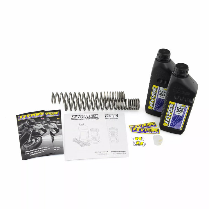 Progressive Absenkfedern können verwendet werden, um die Frontend des Motorrads zu senken, wenn es nicht möglich ist, die Gabeln durch die Yokes (Dreifachklemmen) zu senken. Hyperpro rät, sowohl die Vorder- als auch die Rückseite des Motorrads zu senken, um das beste Fahrverhalten des Fahrrads zu sichern und in Ihr Fahrrad zu passen.