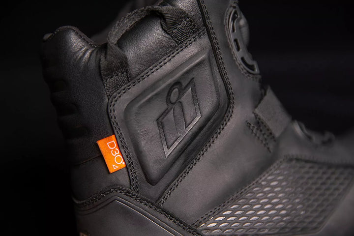 Premium Leder Upper verfügt über eine wasserfeste Finish, atmungsaktives Ereignis, wasserdichte Liner helfen, trockene, hochschledigte Öl/ Schlupf-resistente Gummi-Außensohle trocken zu machen, die motorradische Leistung mit offener Zellpolyurethan-Einlegesübung Füße, BA, bietet. Bequeme Passform, Dual D3O® -Einsätze liefern Knöchelabdeckung, verstärkte Gummi -Zehenkappen, reflektierende Fersenakzente und Schalthebel -Grenzflächen -Nubs