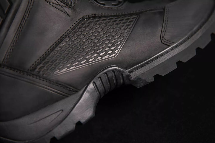Premium Leder Upper verfügt über eine wasserfeste Finish, atmungsaktives Ereignis, wasserdichte Liner helfen, trockene, hochschledigte Öl/ Schlupf-resistente Gummi-Außensohle trocken zu machen, die motorradische Leistung mit offener Zellpolyurethan-Einlegesübung Füße, BA, bietet. Bequeme Passform, Dual D3O® -Einsätze liefern Knöchelabdeckung, verstärkte Gummi -Zehenkappen, reflektierende Fersenakzente und Schalthebel -Grenzflächen -Nubs