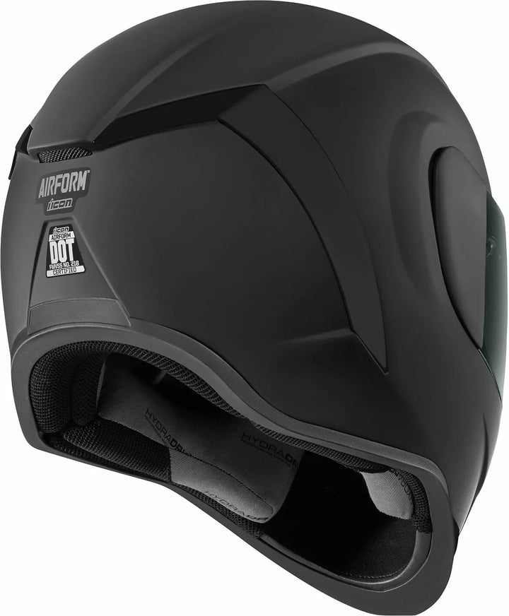 Injection Molded Polycarbonate Shell for Strength, Sculpeed NECK Roll, FAG-FREE ICON OPTICS ™ Shield with Rapid-Rease ™ System, ProLock ™ Positive Shield Locking System, Internal Airflow Geometry, Continly On Dropsh Shield is in the fully closed position, Removable Molded Breath Deflector, Internal Dropshield ™ with Exterior Switch, Removable Hydradry ™ 3-Piece Moisture Wicking Liner, Internal Speaker Taschen funktionieren mit Icons R.A.U. Das Bluetooth -Gerät umfasst Clear & Dark Smokon Icon Optics ™ Shield, einschließlich Dark Smoke Dropshield ™, enthält Rubatone Chin Vents ™