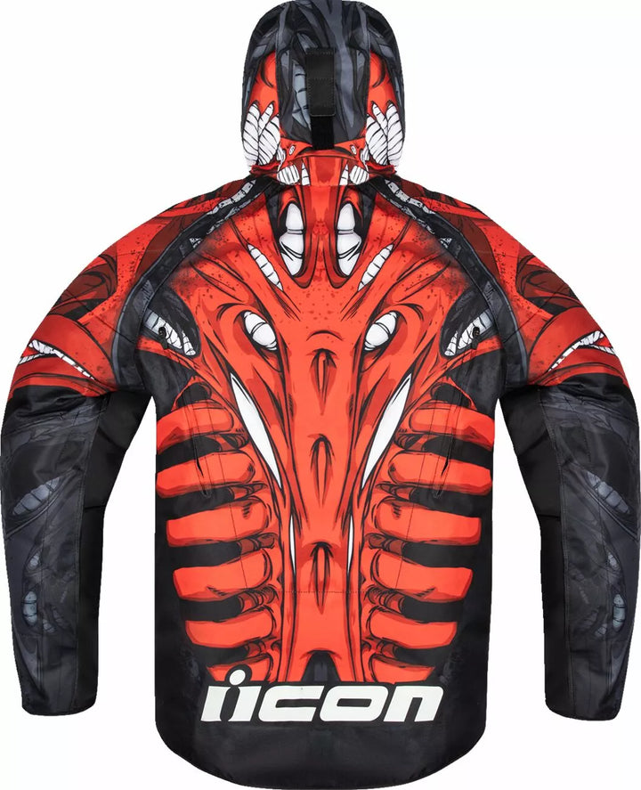 Airform Manik'r ™ Grafik auf der Vorder- und Rückseite der Jacke, 420d Polyester-Chassis mit 300D-interner Verstärkung, PU-beschichtetem Schalenmaterial mit DWR-Finish, D30® Abnehmbarer Viper-Rückenschutz; Ellbogen- und Schulter-Impact-Protectors, Bungee-Kabelstil-Kordelhaube, Airfly ™ -Menen-Vorder-Mesh-Panel mit Brust- und Rücken-Reißverschluss-Lüftungsschlitzen, Entlüftungsmanschettenschleizungen, Rückenschutz EN 1621-2 Level 1