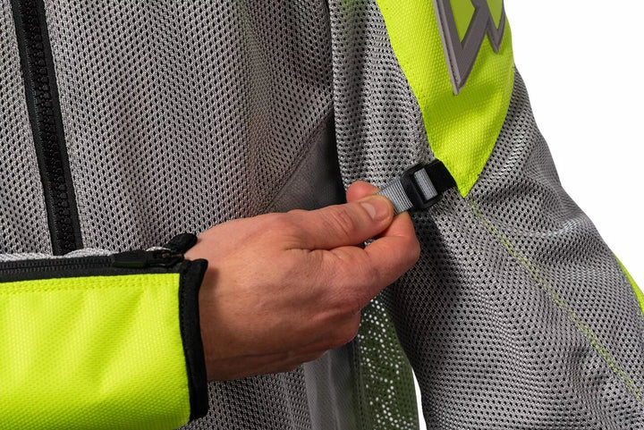 Langlebiger 300D-Polyester- und Eisen-Weave ™ -Mesh-Chassis, einstellbare Taille und Armriemen, ICON® Sport Fit, YKK® Reißverschlüsse, Rückenschutz EN 1621-2 Level 1, EN 17092-4: 2020-A Klasse