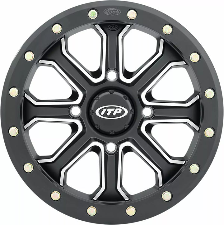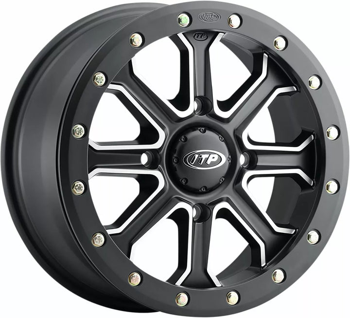 Beadlocke -Design versichert Außenperlenaufenthalte in der anspruchsvollen Umgebung, näher an OE -Offsets, um optimale Einrichtungen und Leistung, exklusive ITP -Exklusive "Rock Armor" Inner Wheel Lip, mattes schwarzes Finish mit bearbeiteten Kanten, Mittelkappe und Ventilratte, EU -Last, Last, EU,