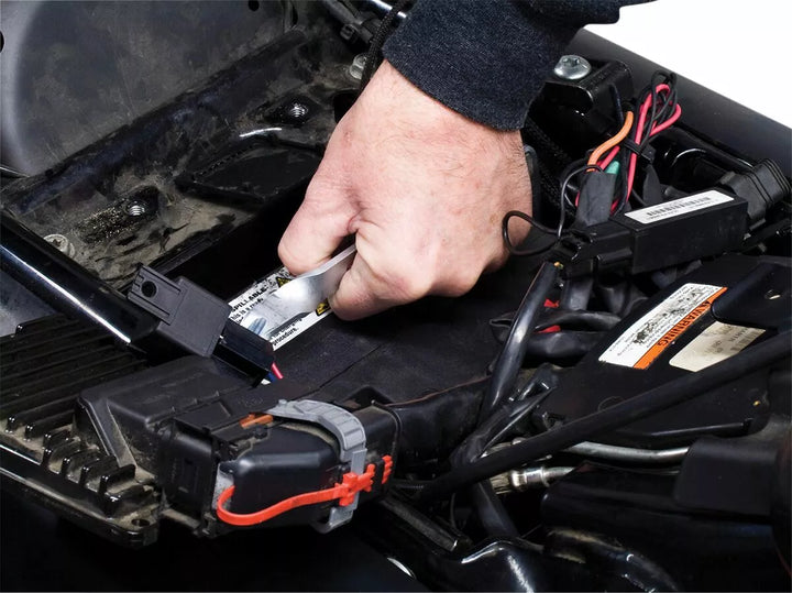 Nach den größeren Werkzeugen für Automobilbatterien modelliert, ist jedoch für Harley-Davidson®-Modelle ordnungsgemäß dimensioniert und erhöht leicht Batterien, die eine extrem enge Passform in das Fach haben, das in den USA hergestellt wird.