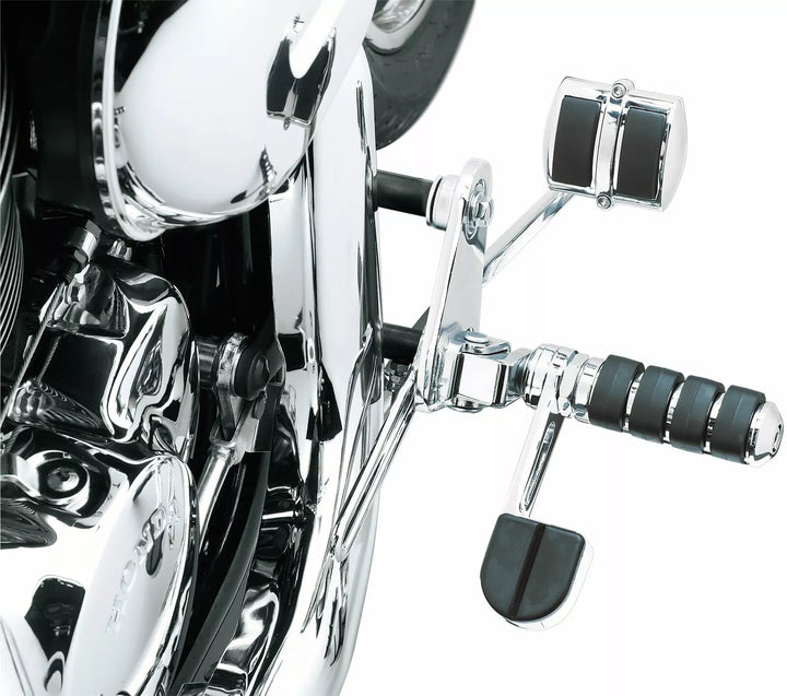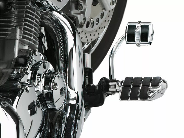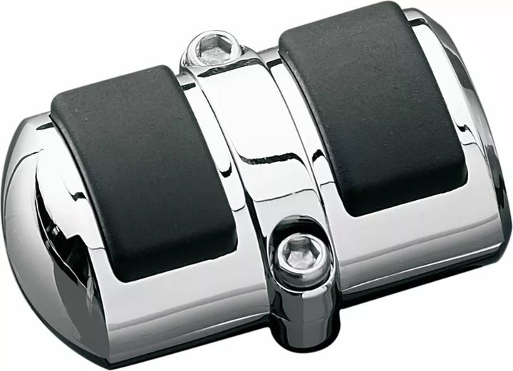 Das Clamshell -Design verfügt über ein Chrom -Finish mit Gummieinsätzen, installiert über Lagerpolster. Sichert mit zwei Setschrauben