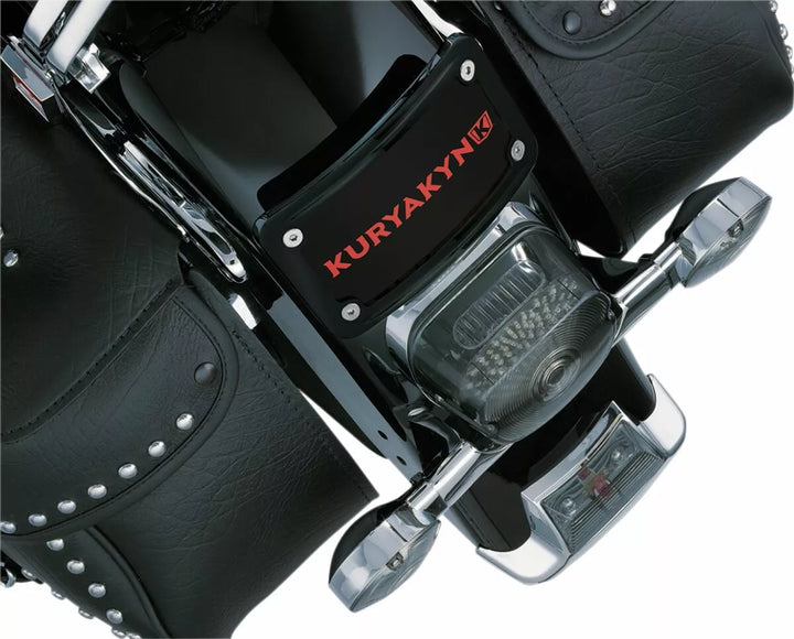 Gebogene Hintergrundplatte und Rahmen treffen sich sauber für einen fertigen Look, um auf jedem H-D-Modell mit der Standard-3-Bolzen-Kennzeichenhalterung zu verwenden