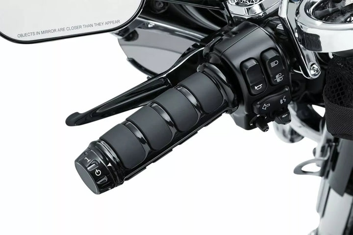 Drei-teiliges Klammschelldesign mit Endkappe ist einfach direkt über den fabrik beheizten Griffen zu installieren, behält alle Werksheizkapazitäten, Griffe aus hochwertigem Aluminium mit weichen, langlebigen EPDM-Gummi und Dauern, Gummieinfügen, Gummieinsätzen mit Isolas mit ISorts-Fahrzeug mit H-D P & A schwarzen Gummi-Griffe ausgestattet sein müssen.