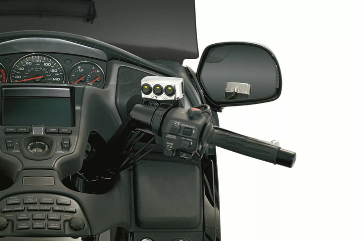 Bequeme Möglichkeit, die Fingerspitzensteuerung über Akzentlichter und andere elektrische Motorrad -Zubehör zu erhalten, hat Cover drei Schalter. Jedes wird für 12 V und bis zu 12A bewertet