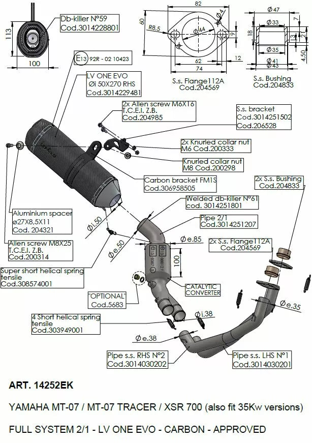 LV One Evo Carbon Faser, der Leovince LV One Evo Carbon ist die Synthese zwischen Tradition und Modernität. Er kombiniert das klassische Stil und die Innovation des Leovince Classic -Stils in der Erforschung der leistungsstärksten und leichten Materialien. Resistente Verpackung (1.650 ᄚ F), einstellbarer Vollkarbonbefestigungsgurt