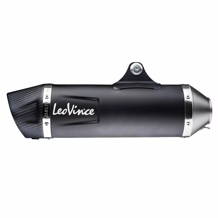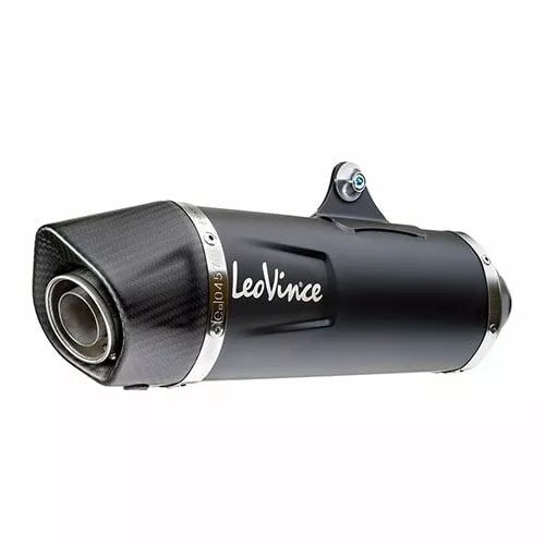Nero Auspuff-System, aggressive Stil und scharfe Linien. Leovince Nero ist der Schalldämpfer für Motorräder und Maxi-Scooters mit einem dunklen und modernen Look, das Ergebnis von Leovinces ständigem Erforschung von Qualitätsstählen und exklusiven Prozessen. Klarer Beschichtung für UV-Widerstand, schwarzer Farbe auf metallischer Keramikbasis, mattes Finishing, Laser-geätztes Leovince-Logo