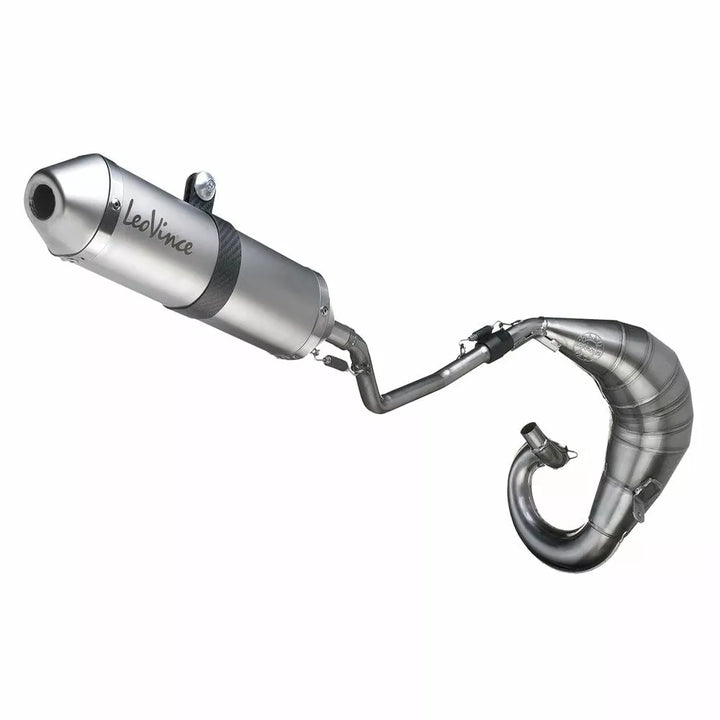 X-Fight Edelstahl Full Auspuff-System für alle 2-Takt-50-cm3-Motoren, die für Offroad und Street bestimmt sind, entwickelte Leovince die neue Hand, ein E-Fight, ein von E-zugelassenes System, perfekt für alle, die Mer Bike anpassen möchten. Edelstahlverpackungsschalldämpfer, handgefertigte Tigschweißungen, Vollkarbonfastengurt, Lasergeätzte Leovince -Logo
