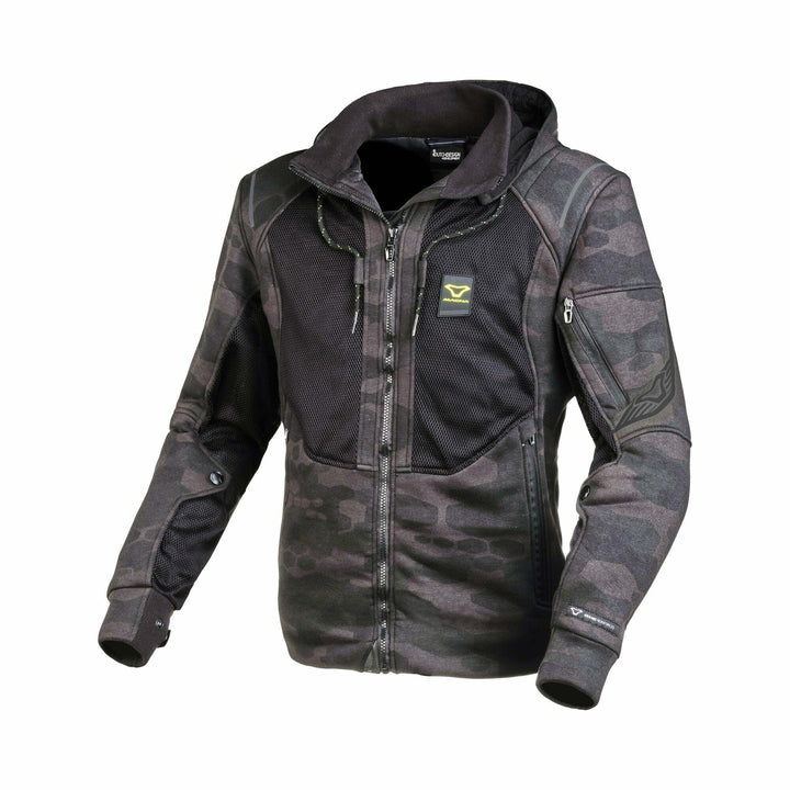 Macna Breeze Jacke. Belüftung mit Reißverschluss und abnehmbarer Kapuze. Die Lüftungsgremien fördern an heißen Tagen die richtige Luftzirkulation. Es enthält auch CE -zertifizierte Schutz für Schultern und Ellbogen.